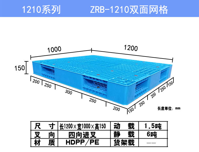 1210雙面網格是一款常用尺寸的雙面塑料托盤,它的特點是結構合理,尺寸科學,既能在集裝箱里面使用,也可以在倉庫中周轉使用,同時因為采用注塑工藝,產品形變量很小,非常適合箱裝貨物的使用,深受客戶青睞。